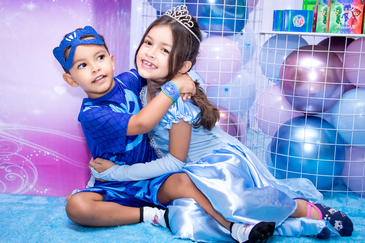 Uma encantadora princesa e um super herói com um lindo sorriso!